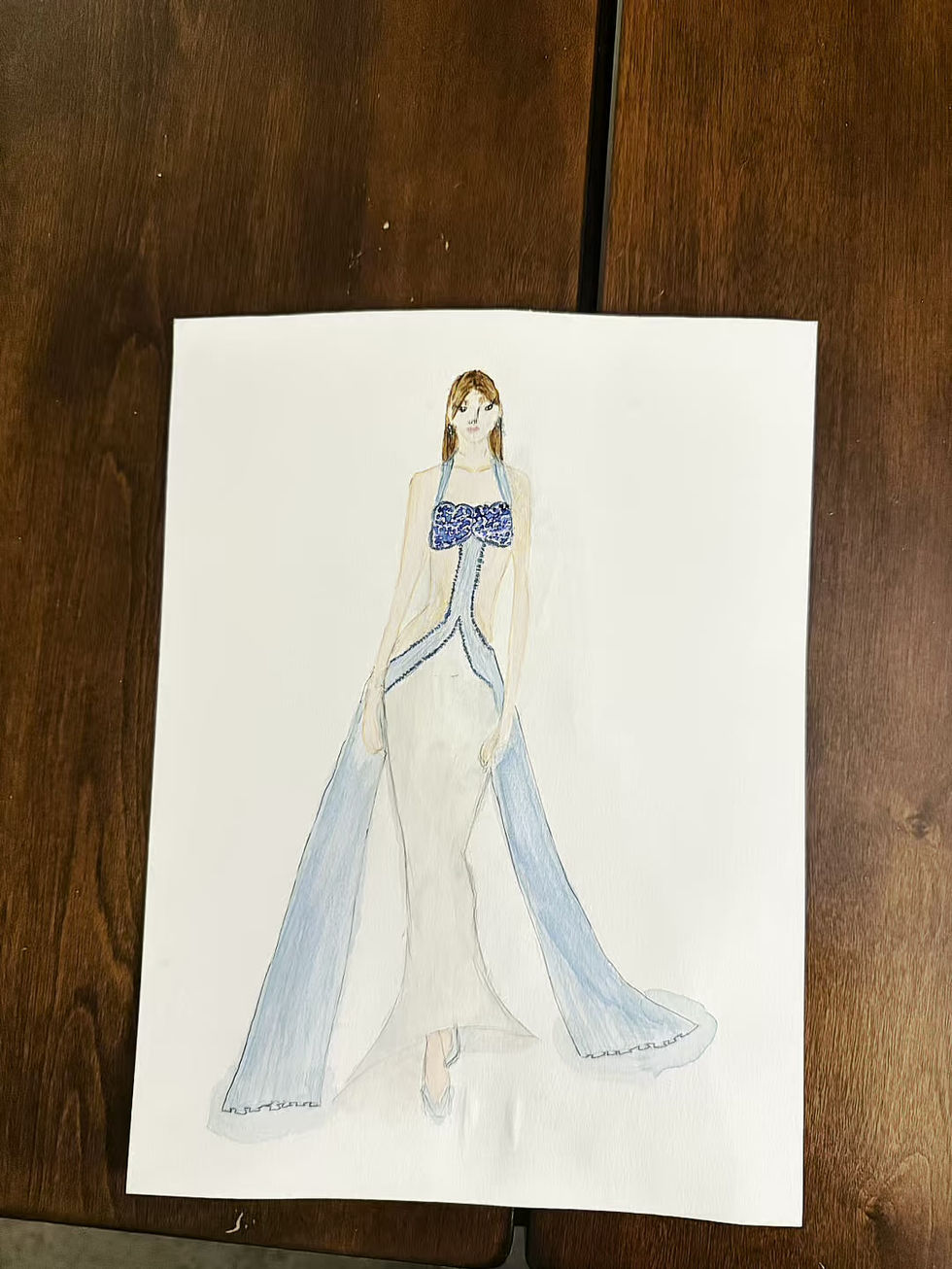 This look represents the later middle stage of escapism, when you’ve escaped for so long that your emotions begin to resurface. You feel trapped again, but not as intensely as before. The light blue symbolizes the beginning of healing, while the chiffon elements reflect the feeling of becoming almost free.